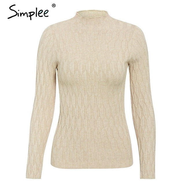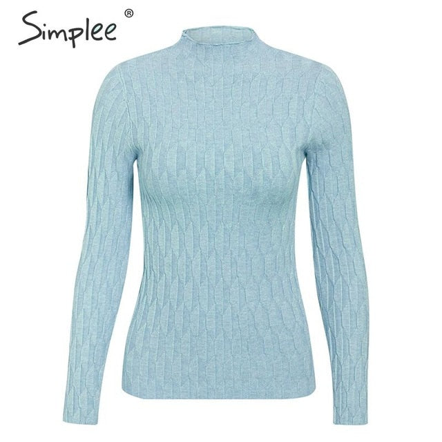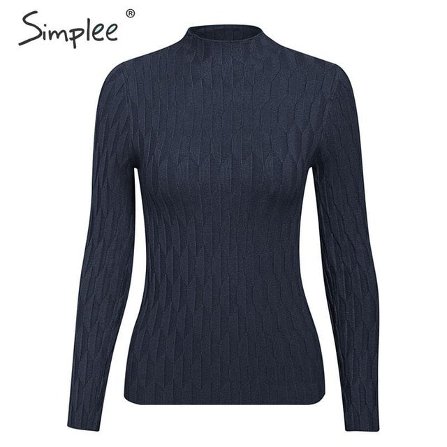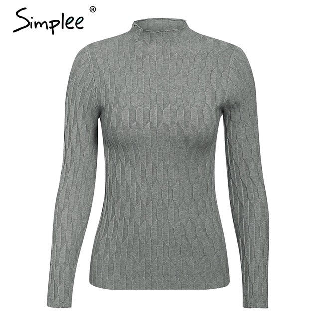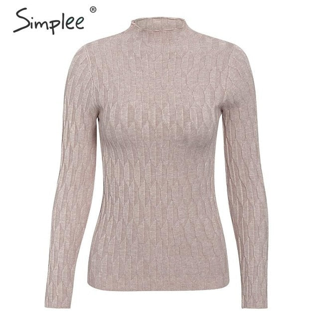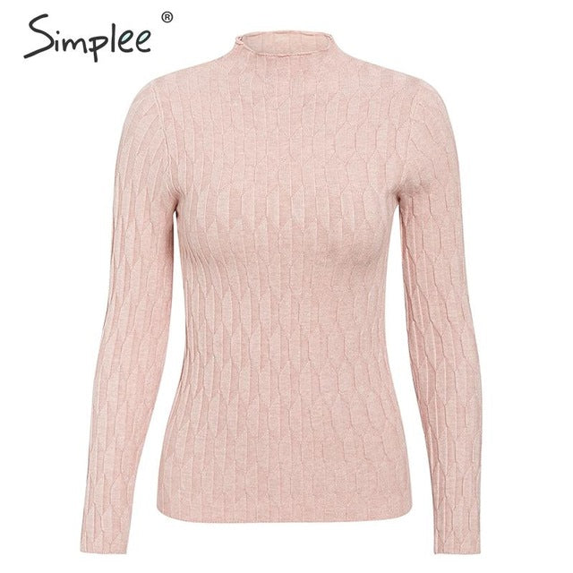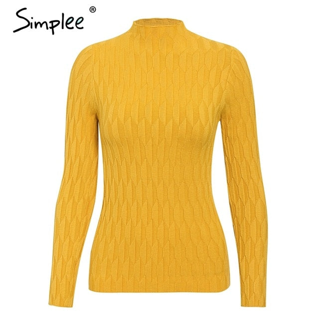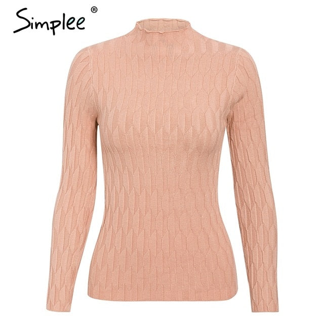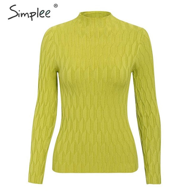 women knitted Turtleneck Sweater: Casual Soft Jumper Fashion Slim Femme Elasticity Pullovers