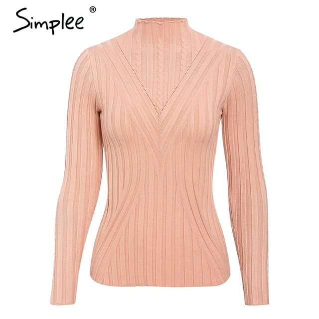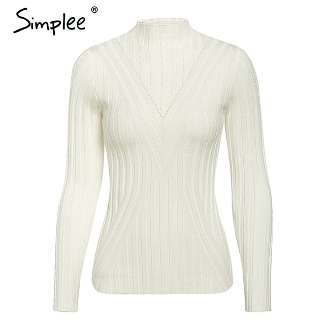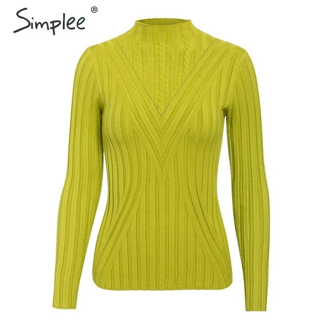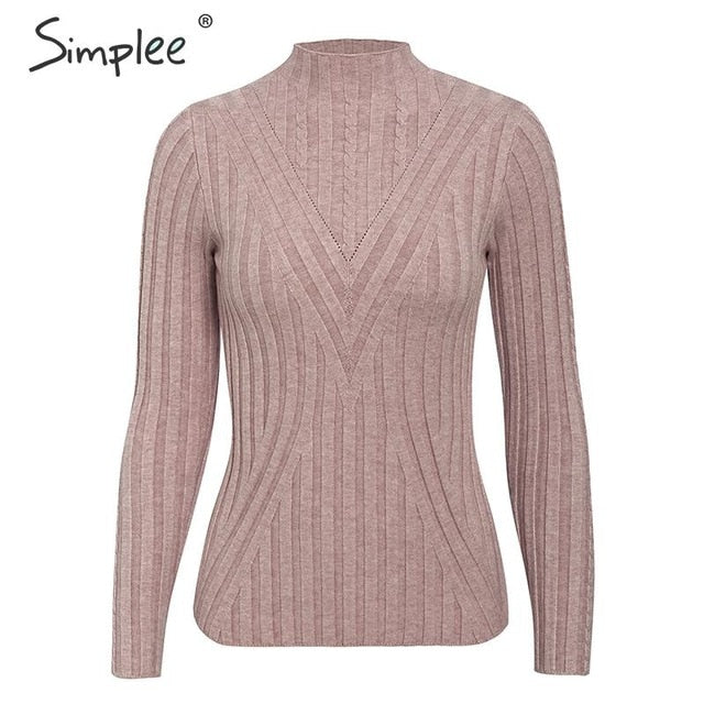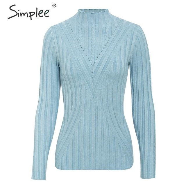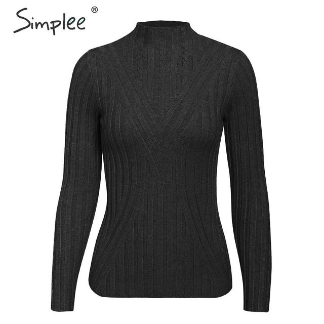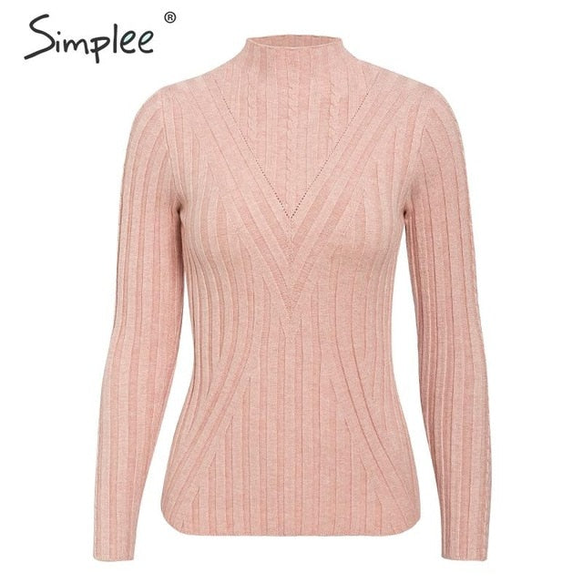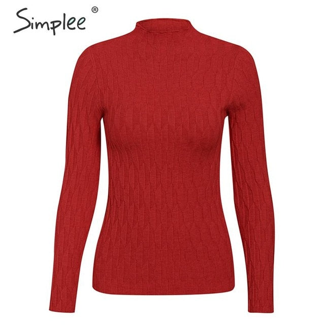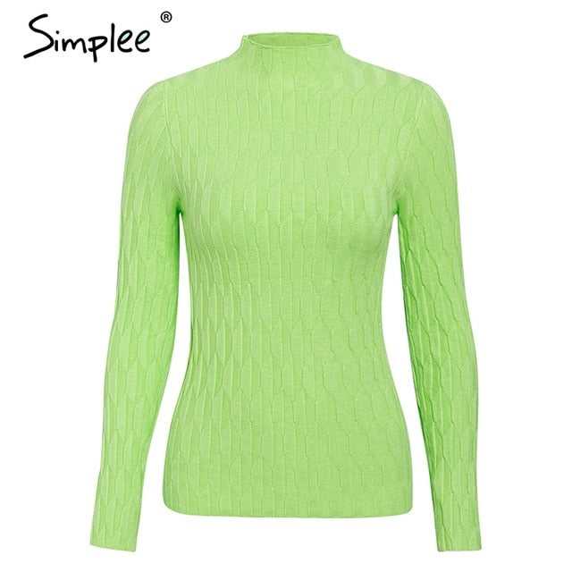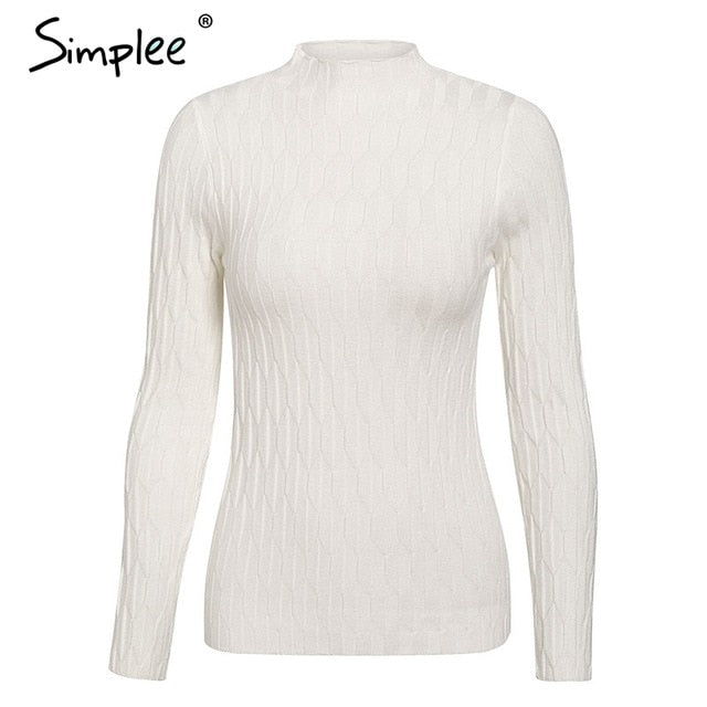 women knitted Turtleneck Sweater: Casual Soft Jumper Fashion Slim Femme Elasticity Pullovers